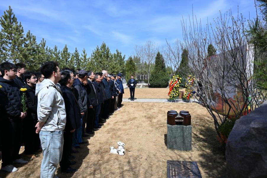 下午,研究生及職工代表前往墓園祭掃,為楊先生夫婦塑像獻花。退休黨員王琦研究員分享了楊先生在科研道路上攻堅克難、令人敬佩的故事。研究生們紛紛表示,將以科學家精神為燈塔,不畏艱難,敢于向重大科技難關(guān)發(fā)起沖鋒,為祖國的核事業(yè)點燃青春的引擎。